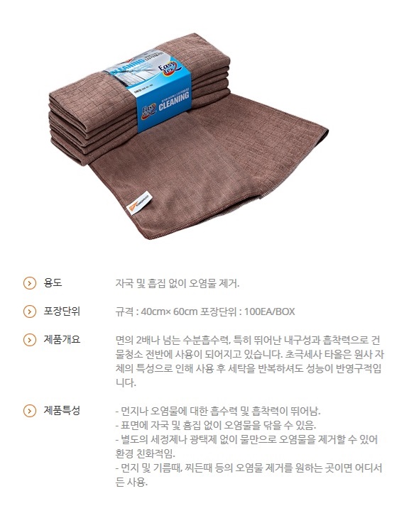 ■ 품명 및 모델명 : [업체배송]극세사걸레 이지타올 이지텍스 사각테리 걸레 갈색(40x60cm/5매/캉가루)