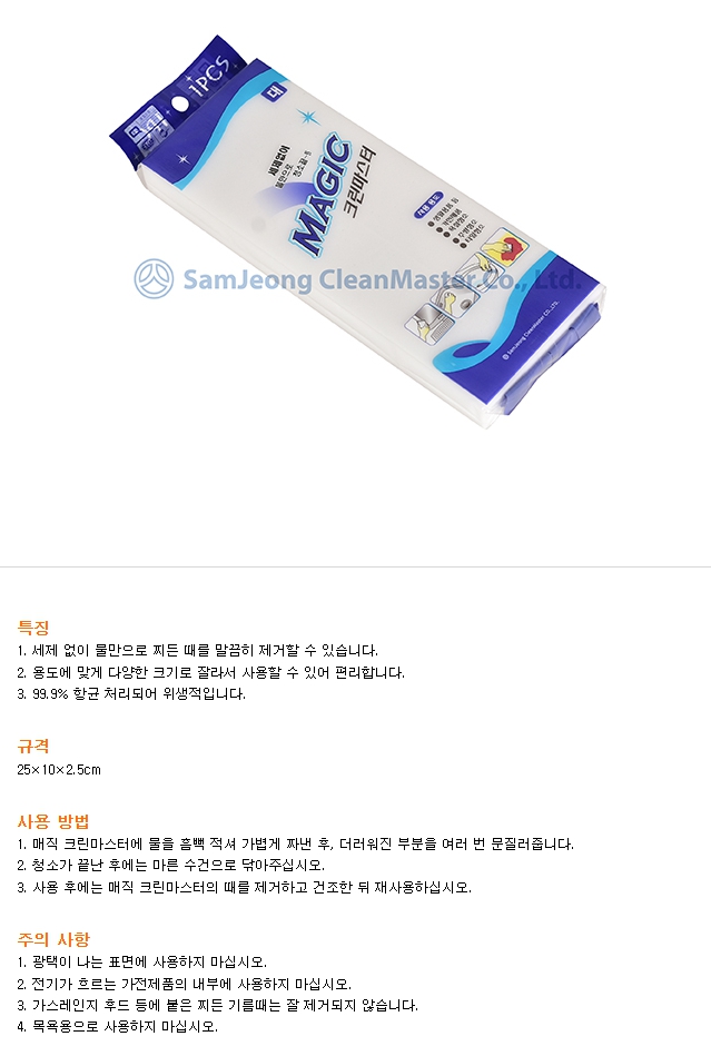 ■ 품명 및 모델명 : [업체배송]매직블럭 매직크린 마스터 134381 대(250x100x25mm/삼정크린마스터)