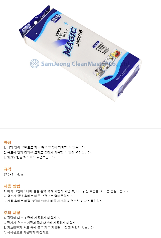 ■ 품명 및 모델명 : [업체배송]매직블럭 매직크린 마스터 134398 특대(110x275x40mm/삼정크린마스터)