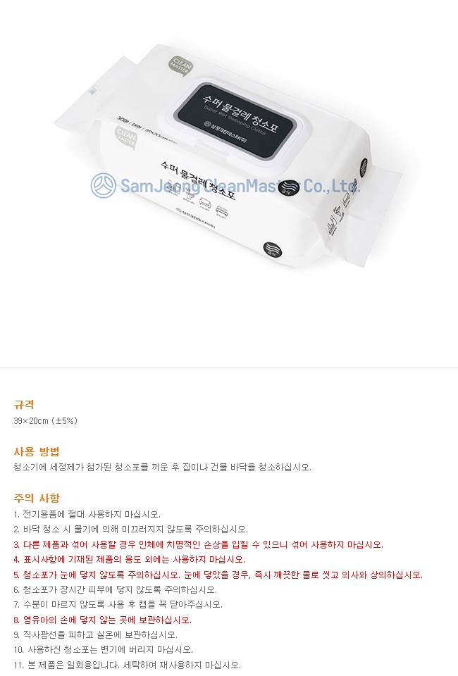 ■ 품명 및 모델명 : [업체배송]수퍼 물걸레 청소포 150947 30매(삼정크린마스터)