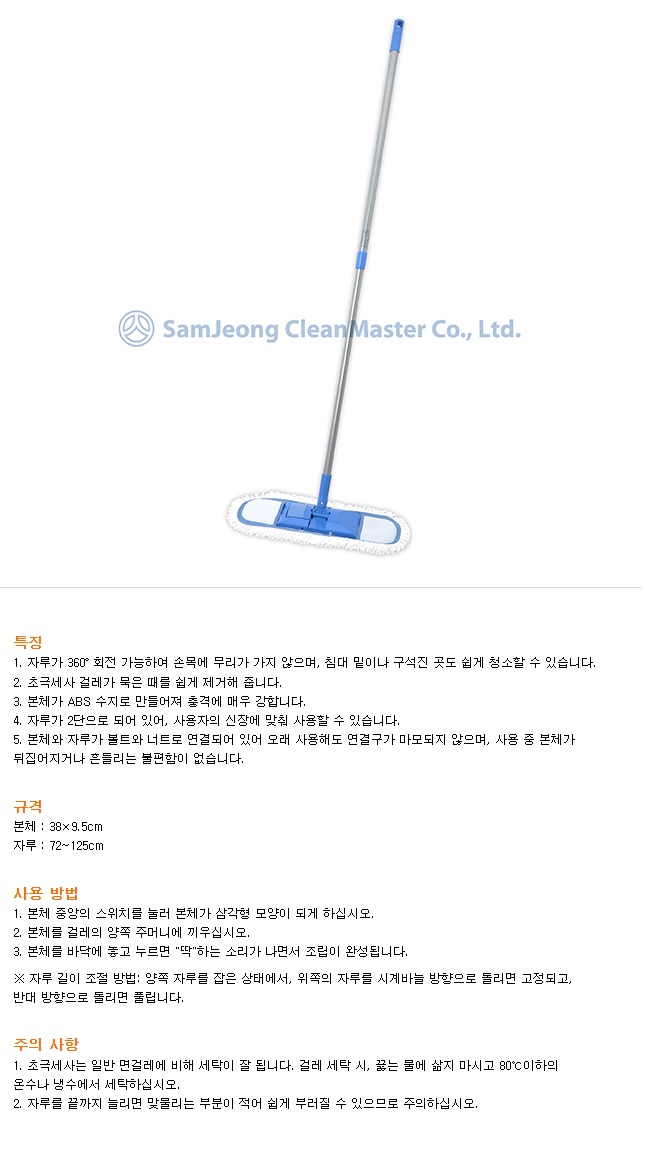 ■ 품명 및 모델명 : [업체배송]초극세사 가로방걸레 세트 130093 분체 2단핸들(삼정크린마스터)