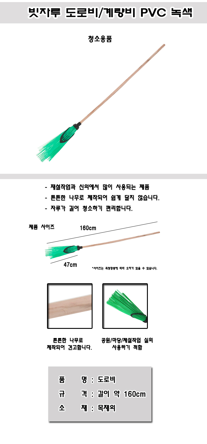 ■ 품명 및 모델명 : [업체배송]빗자루 도로비/계량비 PVC 녹색 160cm