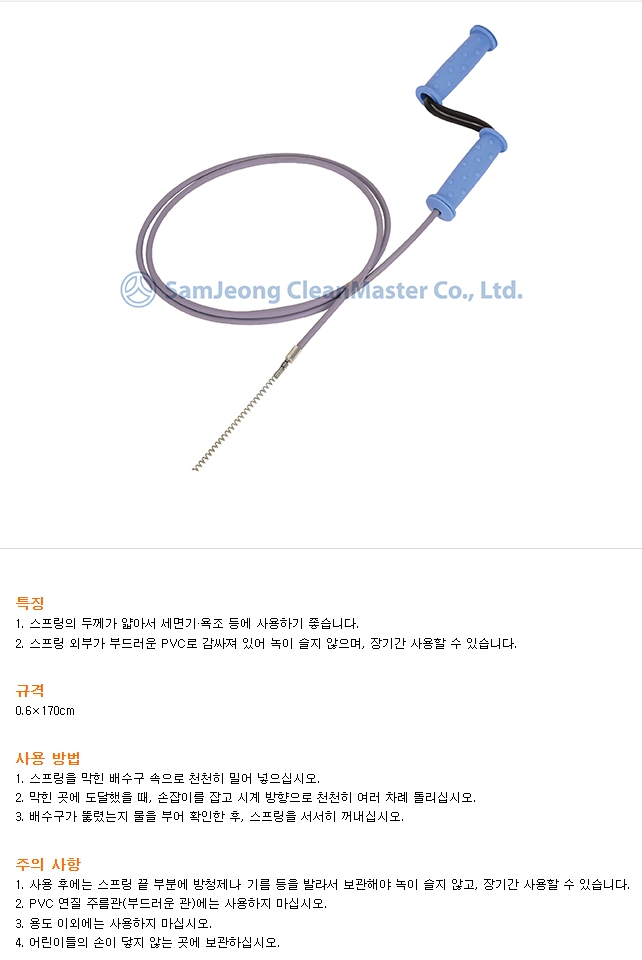 ■ 품명 및 모델명 : [업체배송]배수구 청소용 스프링 180302 1.7M 삼정크린마스터
