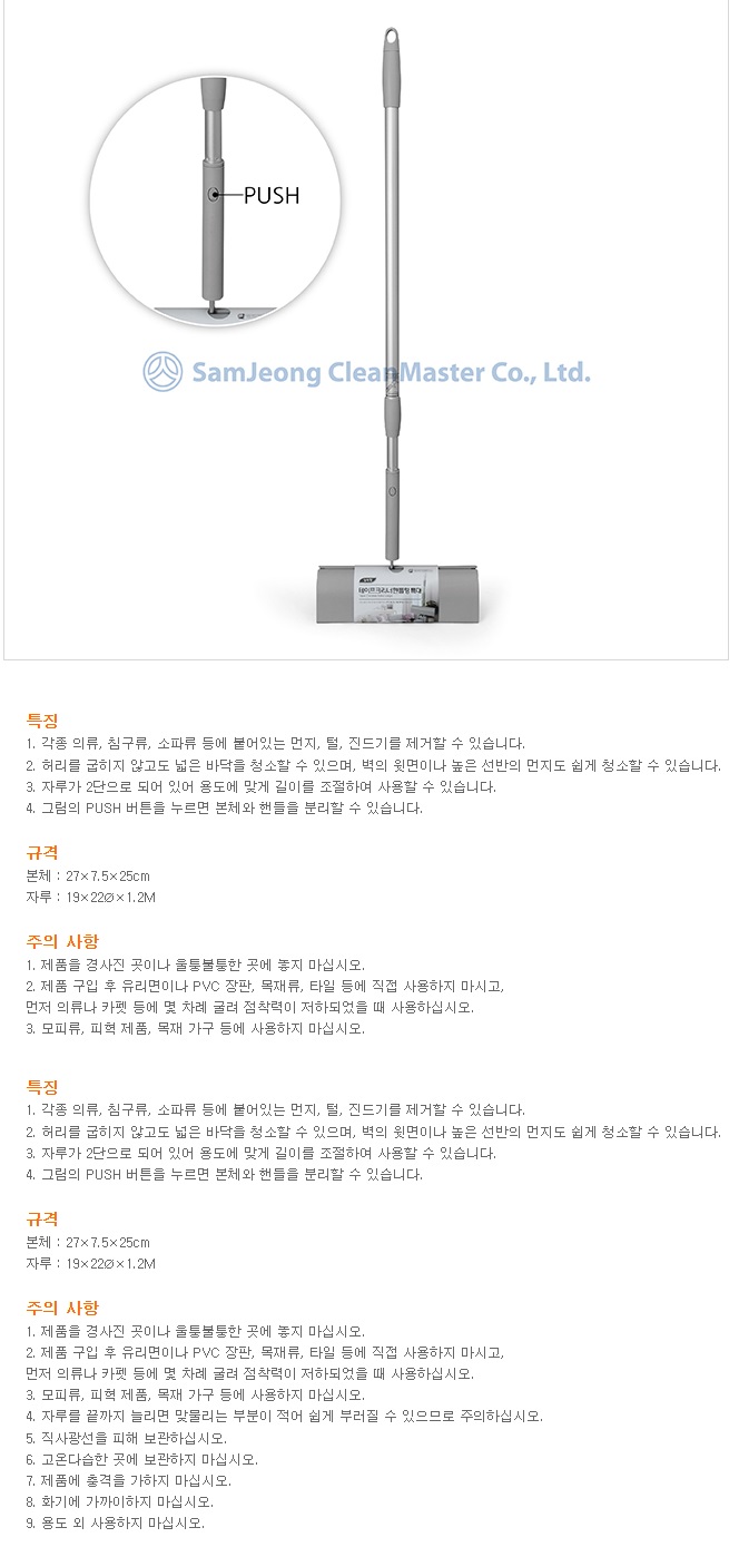 ■ 품명 및 모델명 : [업체배송]실속형 테이프크리너 특대형 핸들 세트 133988 2단 1.2m 삼정크린마스터