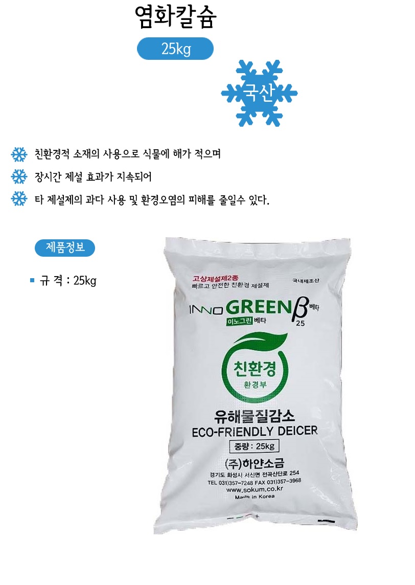■ 품명 및 모델명 : [업체배송]염화칼슘(25kg/국내산)