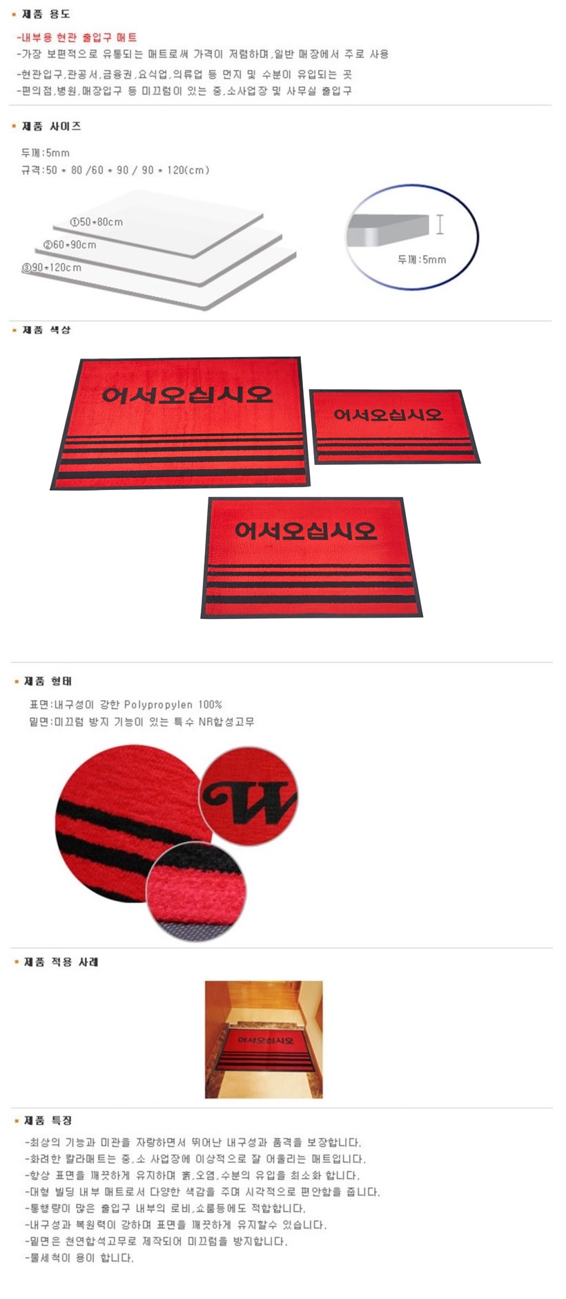 ■ 품명 및 모델명 : [업체배송]사무실용 발매트(중형/60*90/적색)