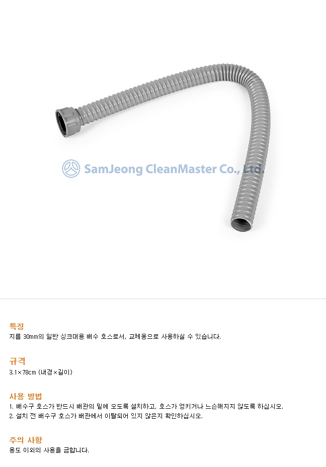 [업체배송]씽크대 배수구 호스 일자 181019 삼정크린마스터