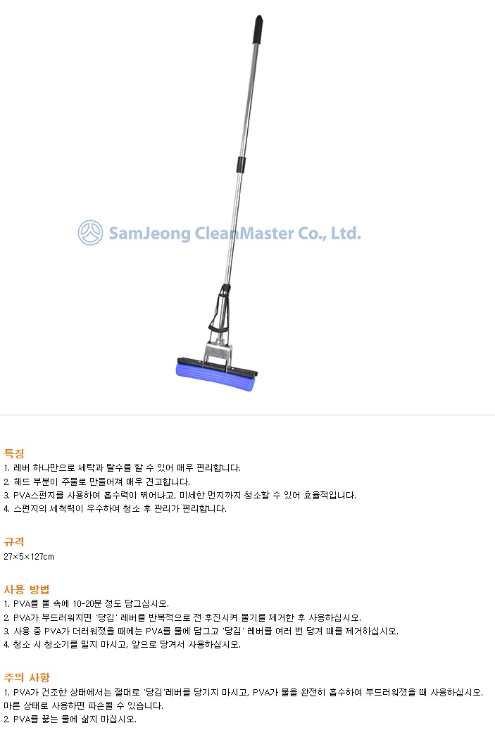 ■ 품명 및 모델명 : [업체배송]펄프청소기 160007(헤드27.5x6cm/자루길이80~120cm/삼정크린마스터)