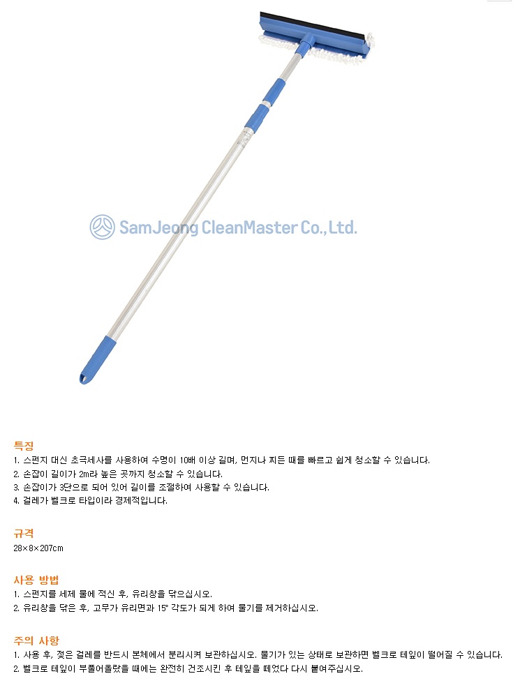 ■ 품명 및 모델명 : [업체배송]유리닦이 초극세사 수퍼 3단 780038 알루미늄 3단 207cm 삼정크린마스터