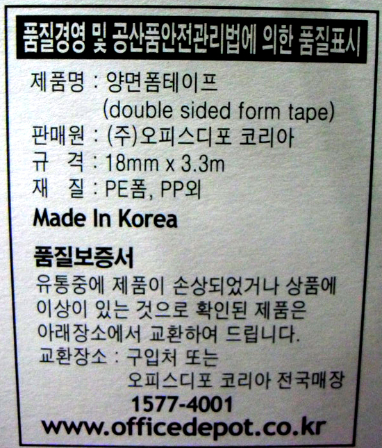 ■ 품명 및 모델명: 양면 폼테이프(18mm*3.3M)